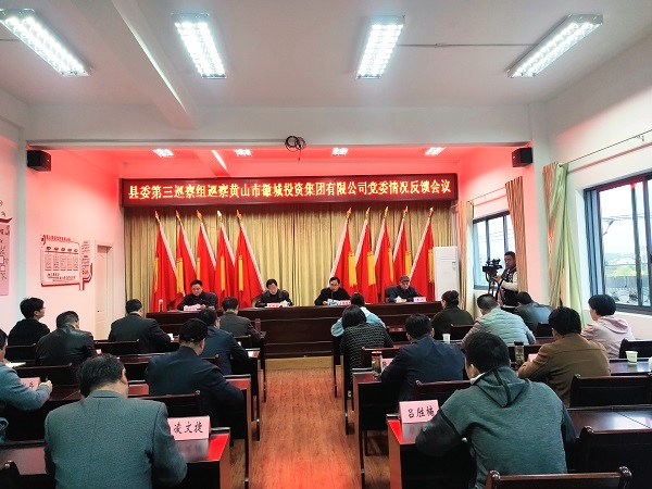 根据县委的统一部署,2020年3月24日下午,县委第三巡察组向徽投集团党委反馈巡察情况。县人民政府副县长汪洪涛出席会议并讲话,县委第三巡察组组长张国忠代表巡察组反馈巡察情况,集团党委书记、董事长洪筱明主持会议并作表态发言。