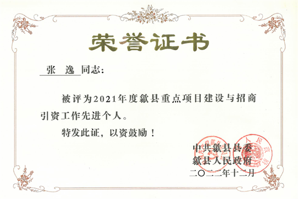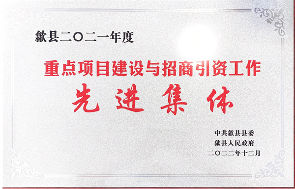 根据《中共歙县县委 歙县人民政府 关于2021年度歙县重点项目建设与招商引资工作先进集体和先进个人评选表彰结果的通报》(歙〔2022〕195号)文件通报,黄山徽投集团荣获2021年度歙县重点项目建设与招商引资工作先进集体和先进个人(4人)。
