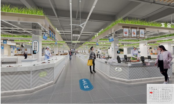 1#楼一层业态规划为菜市场:市场内设岛台摊位共49个,分水产、冷冻、白条禽、豆制品、禽蛋、干货、熟食等业态;外围店铺34间,面积不等。二层整体招租,面积约5000㎡。