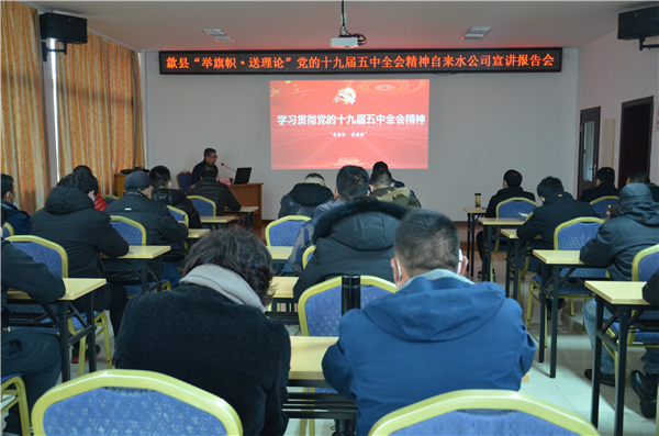 为深入学习贯彻习近平新时代中国特色社会主义思想和党的十九届五中全会精神,助力公司“十四五”规划开好局起好步。2月1日上午,自来水公司举办了“举旗帜·送理论”党的十九届五中全会精神宣讲报告会,会议邀请到县委宣讲团成员、县直机关工委书记何宏日专题辅导,公司全体党员干部职工40余人参加会议。