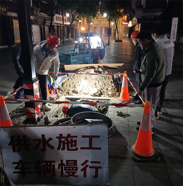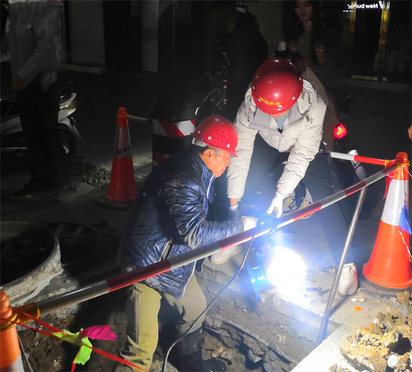 根据计划,11月25日将实施中和街两处阀门更换任务。为了减少夜晚噪音扰民,施工班组白天提前带人将工作基坑挖好,做好螺丝除锈等准备工作。晚上10点,路上行人寥寥,大多已归家,而自来水公司安装维修人员却选择逆行,在寒冷的天气中奔赴施工作业点。