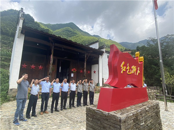之后,在狮石乡工作人员的带领下,一行人参观了狮石革命村史馆。大家认真聆听了关于中国工农红军北上抗日先遣队保家卫国抵御侵略的伟大事迹,深刻感受到方志敏、粟裕等革命先辈不怕流血牺牲、艰苦奋斗的革命精神。并在村史馆前,全体党员重温了入党誓词。