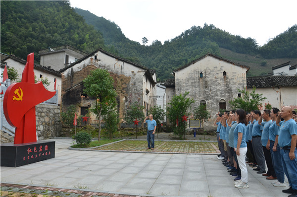 为庆祝建党99周年,7月1日,歙县自来水有限公司组织党员赴上丰岩源革命老根据地,寻找红色印记,回顾党的光辉历程。