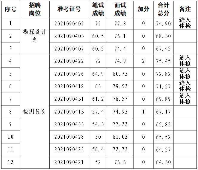 根据《黄山徽投集团招聘员工考试公告》,面试工作已于2021年9月4日结束,现将考生的面试成绩及最终综合成绩予以公告: